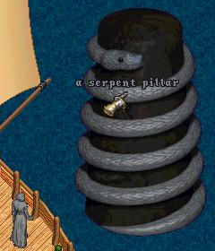 船でシロエビの修行中にヘビの塔を見つけた。