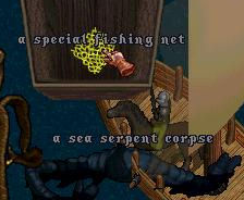 幸運にも死体の中に網が入ってた。
