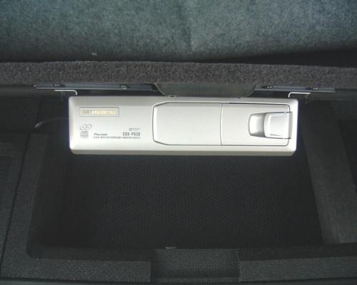 6連装のCDチェンジャーです。 取付け場所はカーゴルームの床下にあるサブトランクに取り付けました。 これにより、カーゴルームにチェンジャー本体を置く必要がありません。 本当は6連装ではなく12連装がほしかったのですが、12連装だとサブトランクに 本体が収まらないので、仕方なく6連装にしました。